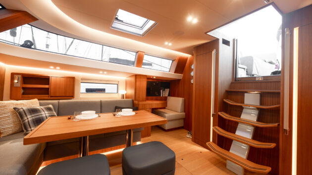 Big coachroof windows and slim mullions maximise the amount of natural light finding its way into the saloon. Photo: Photo: Andreas Lindlahr/EYOTY