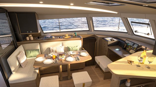 This model also includes the optional SmartRoom first seen on the 44 that gives bluewater multihull sailors a flexible space that can be used as a workshop and laundry room with considerable additional stowage, yet can also provide a spare bedroom or office space.