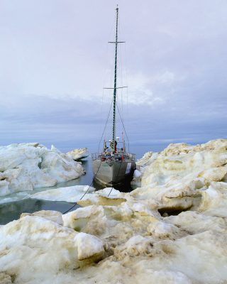 Open Water, Breaking Ice is a beautifully produced account of how a man who, by his own admission, is more adventurer than sailor, makes the most of this remarkable boat to achieve his goal. He gives full credit to his skipper Nikolai Litau and his crew of men, women and a 14-year-old boy. We join them as they enter the frozen sounds of the North West Passage, face to face with the closing window of encroaching winter ice.