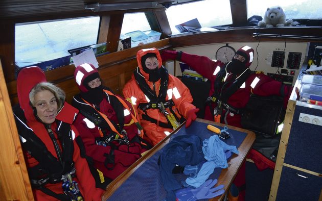 Northabout’s crew wrapped up against the cold. Photo: by steven.edwards@basteir.com