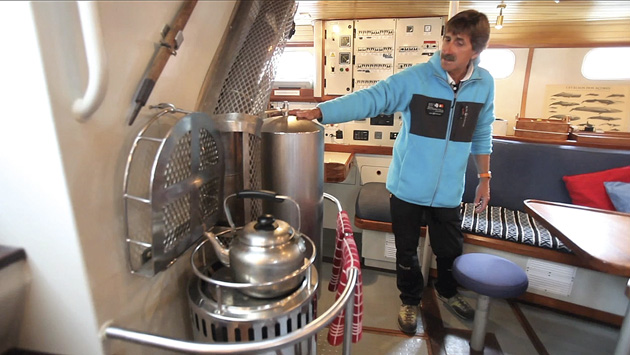 An exception for high latitudes is a good heating system. We run a Danish Refleks fishing boat diesel heater that runs 24/7 and doubles as a hob. Most people are surprised that we have no watermaker. We prefer to take it from the waterfalls of Tierra del Fuego and the run-off from the glaciers of Antarctica. The former is better for your whisky, the latter is everywhere, so why not?