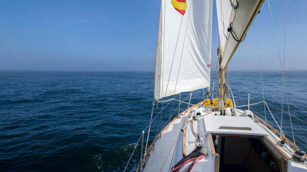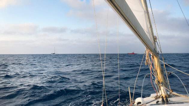I looked back to see the boat heading for me. To my relief, their engine quit. I sailed farther off, feeling anxious and guilty. They must have been at a loss what to do, desperate to get out of the situation they were in. I didn’t know what to do either. Nothing felt right.
