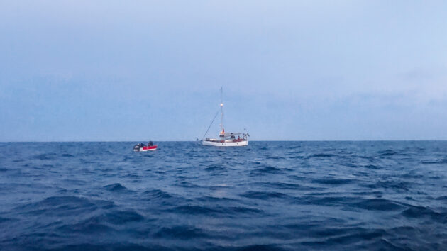 I didn’t want to leave in case the situation deteriorated and I was needed. But being there on my accessible little boat was just taunting them. Even if I knew Isean could handle the weight of ten extra men (I did not), and even if I was comfortable with that prospect (I was not), these steep seas were not the conditions in which to attempt it. The safest thing was to wait for professional help.