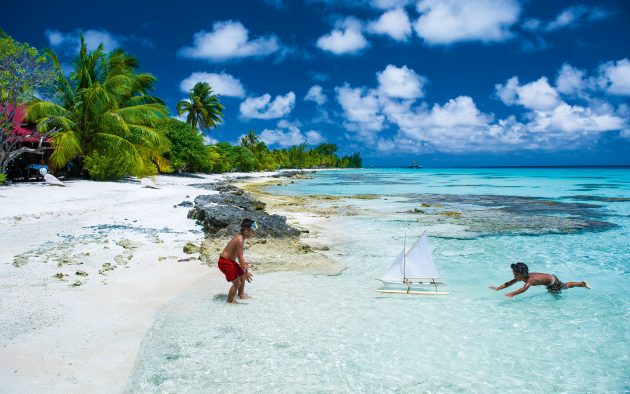 For the children, there was the tradition of the ‘titiraina’, a model of a sailing dugout they played with and raced; a fun game which also allowed them to understand the wind and the sea from a very young age. Photo: Julien Girardot