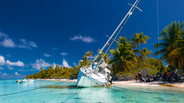 We’ve seen many catamarans end up on sand bars and reefs. Unfortunately the options for freeing them are fewer. Photo: Christophe Launay/DPPI Media/Alamy