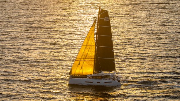 Lighter performance multihulls with Code sails will tend to sail angles and often cover additional miles on a typical transatlantic crossing. Photo: Outremer