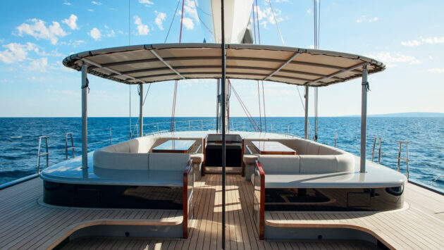 Plenty will comment on how unsuitable it is for sailing offshore, but they need to remember most owners of this type of craft are daysailing from chic Med marinas and anchorages. It should also be emphasised that these are semi-custom yachts and owners can choose where they want to install crash bars and handrails.